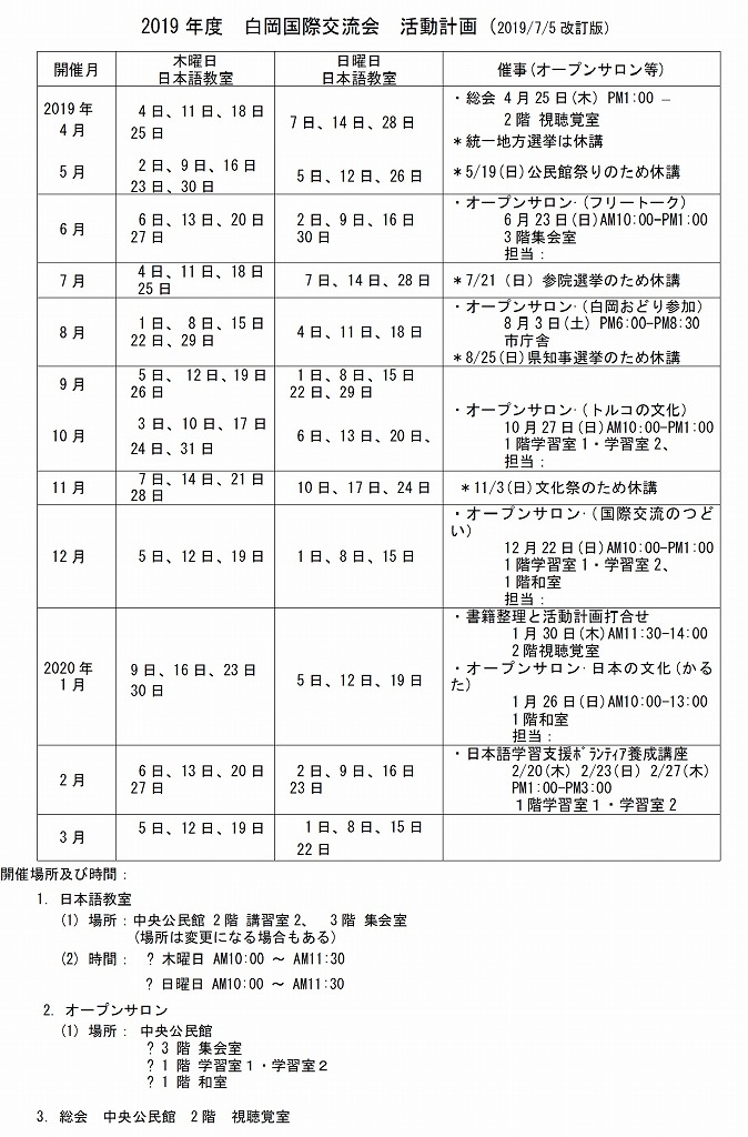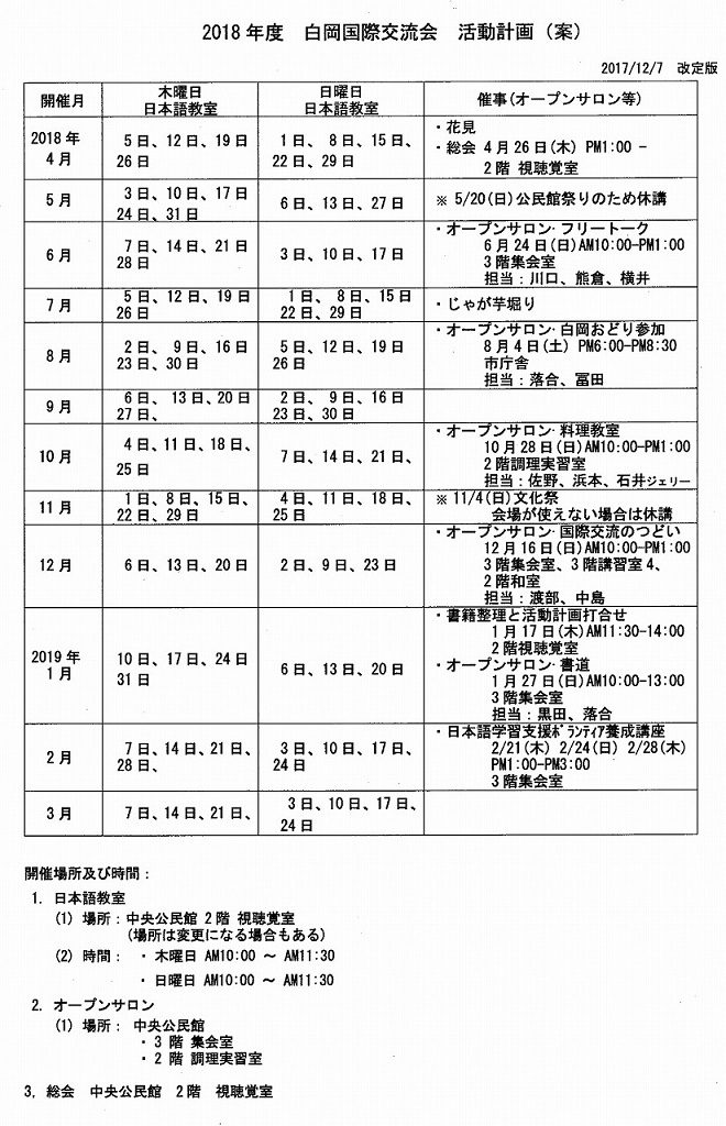 H31年(2019年)度 白岡国際交流会 活動計画(案)