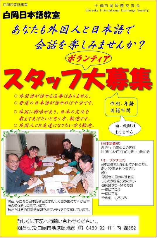 日本語教室ボランテアスタッフ大募集