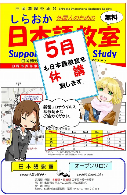 <緊急連絡>5月も日本語教室を休講します。