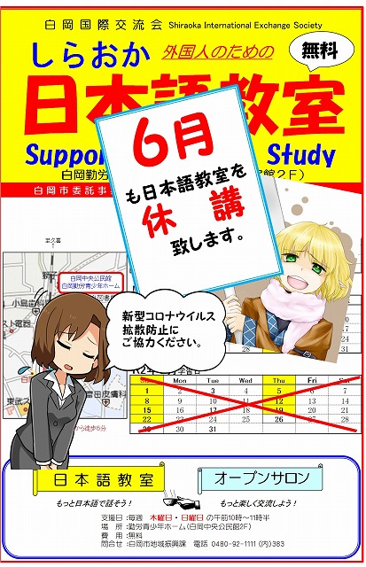 <緊急連絡>6月も日本語教室を休講します。