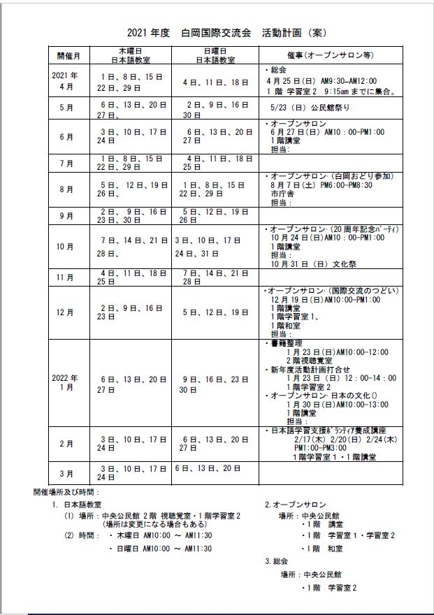 2021年度白岡国際交流会活動計画