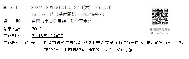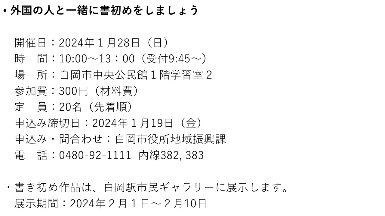 問合先: 白岡市地域振興課 (92)1111 内線384