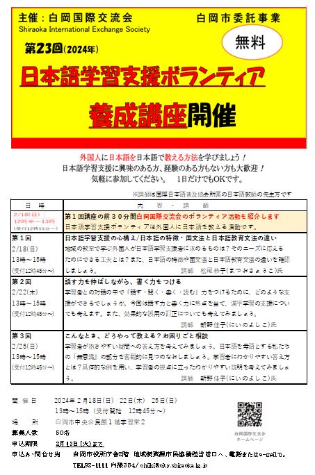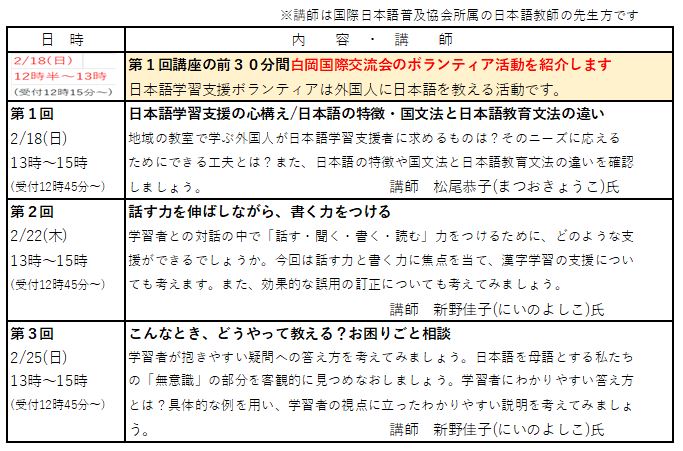 2024年日本語学習支援ボランティア養成講座を開催しました。開 催 日 2024年2月18日(日) 22日(木) 25日(日)